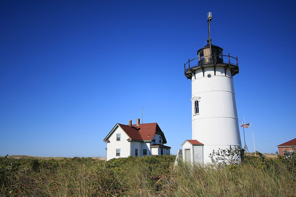 Race Point Light is a historic lighthouse on Cape Cod, in Provincetown, Massachusetts; it is on the National Register of Historic Places. The original tower, first illuminated in 1816, was replaced in 1876 with the current 45-foot tall iron-plated tower and a new keeper's dwelling. The American Lighthouse Foundation operates the property and rents out two buildings for overnight stays. The actual light is maintained by the Coast Guard. The site is reached by walking about 45 minutes over sand; with a National Park Service Oversand Permit, a four-wheel-drive vehicle can be used.